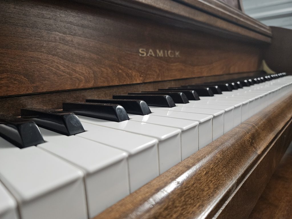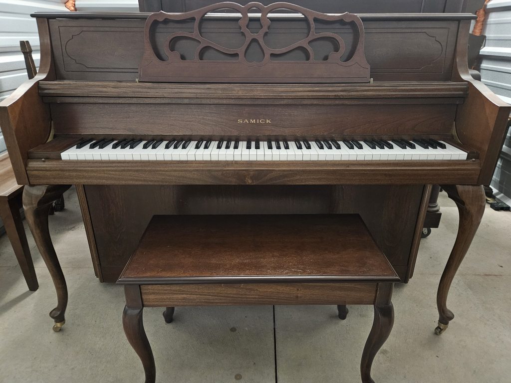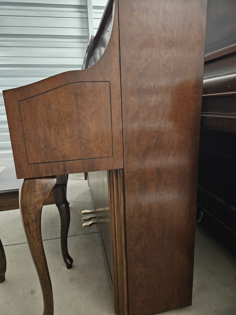 This professional upright piano has a big sound and is an absolute joy to play! Living in Colorado for most of its life, this piano has very tight tuning pins and has a long life ahead of it. This piano has been regulated and tuned in order to, perform and sound better than it ever has. A great piano for your Beethoven or Chopin enthusiast! Turning is included after delivery.